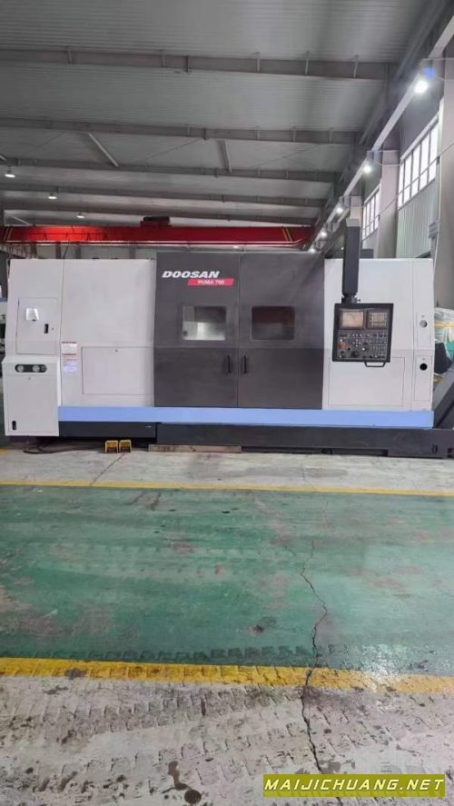 斗山PUMA700数控车床24寸三爪液压卡盘加工直径1000加工长度1600带进口液压中心架设备重17吨齿轮箱主轴扭矩8076牛米。